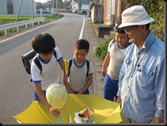 We saw quite a few junior high and high school students. They usually look very surprised when we say “Konnichiwa” which means good afternoon. A few younger boys stopped they had some kind of project that had built and they showed it to us.